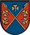 DE: Von Blau und Rot schräggeviert, die Teilungslinien durchgehend mit goldenen Lanzen überdeckt; bogenförmig sind die Seitenfelder mit je zwei goldenen Kleeblättern und das obere Feld mit einem goldenen Kleeblatt belegt.