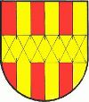 DE: Fünfmal von Rot und Gold gespalten, belegt mit einem damaszierten goldenen Balken.