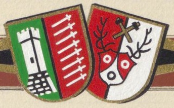 Diese Abbildung stellt das historische Wappen oder die historische Flagge einer noch existierenden oder nicht mehr existierenden deutschen Körperschaft des öffentlichen Rechts dar.