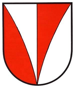 DE: Von Rot und Weiß gespalten, belegt mit einer gestürzten Spitze in verwechselten Farben.