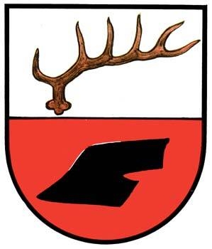 DE: Schild geteilt von Silber und Rot. Oben eine natürlche Hirschstange von links, mit sechs Enden. Unten eine mit der Spitze nach links gerichtete schwarze Pflugschar. (ABl.)