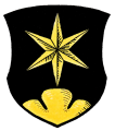 DE: In Schwarz ein sechsstrahliger goldener Stern über goldenem Dreiberg.