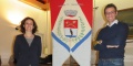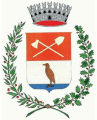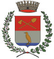 IT: parte superiore con sfondo rosso nel quale figurano un'ascia ed una vanga d'oro poste in croce di S. Andrea; parte inferiore su un campo d'argento un uccello, tarabuso, fermo in uno specchio d'acqua azzurra posta in punta.