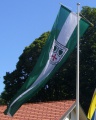 Fahne: Grün-Weiß-Grün mit aufgelegtem Wappen