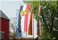 - Bayerische Staatsflagge:Streifen, mit mittlerem Wappen, Banner