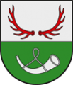 DE: In einem von Silber zu Grün geteilten Schild oben ein Paar rote Hirschstangen, unten ein silbernes Jagdhorn an ebensolcher Schnur.