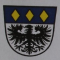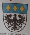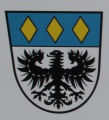DE: Unter blauem Schildhaupt, darin nebeneinander drei senkrechte goldene Rauten, in Silber ein schwarzer Adler.