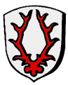 DE: In Silber ein rotes Hirschgeweih.