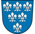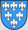 DE: In Blau sechs, drei zu zwei zu eins gestellte silberne heraldische Lilien.