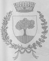 Ornamenti: A destra una fronda d'alloro fogliata al naturale fruttifera di rosso, a sinistra una fronda di quercia e ghiandifera al naturale sostenente un breve d'oro con il motto in lettere nere: "Ex fructibus arbos".