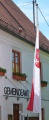 Fahne: Weiß-Rot mit aufgelegtem Gemeindewappen.