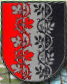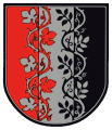 DE: Von Rot, Silber und Schwarz gespalten; in verwechselten Farben der vordere Spalt überdeckt von einer Weinrebe mit drei Blättern außen und zwei innen und der hintere Spalt überdeckt von einer Waldrebe mit drei Blättern innen und zwei außen.