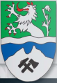 DE: In einem durch einen schmalen silbernen Wellenbalken von Grün zu Blau geteilten Schild oben der wachsende steirische Panther, unten ein silberner zweispitziger Berg, belegt mit schräggekreuztem schwarzen Hammer und Hacke.