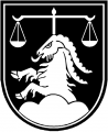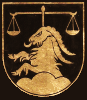 DE: In Schwarz golden aus einem Dreiberg wachsend ein Steinbock mit ausgeschlagener Zunge, überhöht von einer Waage.