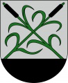 DE: Aus schwarzem Schildfuß wachsend in Silber zwei schräggekreuzte, grüne Schilfrohre mit grünen Blättern und schwarzen Kolben.