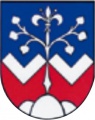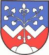 DE: Von Blau und Rot durch zwei gestürzte allseits anstoßende silberne rechte Winkel geteilt; im Schildfuß ein silberner Dreiberg von ineinandergeschobenen Hügeln, aus dem in das obere Feld eine silberne Linde in Form eines Lebensbaumes mit silberner Lilie an der Spitze wächst.