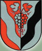DE: Von Rot und Silber gespalten, vorne ein schrägrechter silberner, hinten ein schräglinker schwarzer Fluß; beide Flüsse schließen eine von Silber und Rot gespaltene belaubte Weintraube ein.