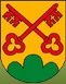 DE: Über grünem Dreiberg in Gold zwei rote, schräggekreuzte Schlüssel mit abgewendeten Bärten und Griffen in Dreipaßform.