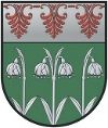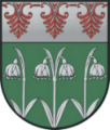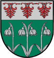 DE: Unter silbernem Schildhaupt mit einem roten gestürzten dreiblättrigen Palmettenfries in Grün silbern drei aus dem Schildfuß wachsende je zweifach beblätterte Frühlingsknotenblumen mit 1:2:1 Blüten.