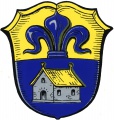 DE: Geteilt; oben in Gold eine aus der Teilungslinie wachsende blaue Lilie; unten in Blau ein silbernes Haus mit goldenem Dach.