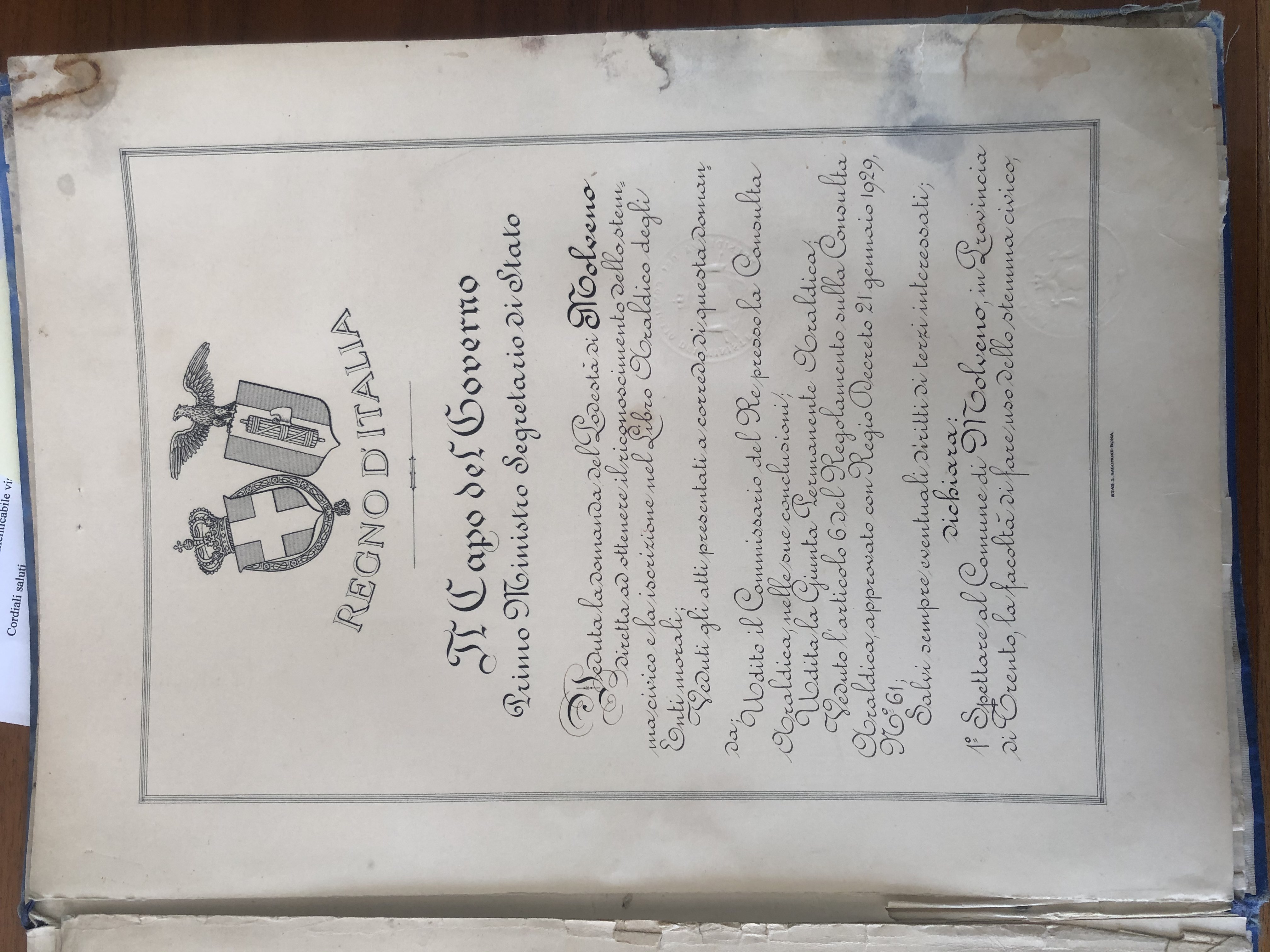 Decreto del Capo del Governo 22/05/1929 (tramite e-mail dal comune, 15/06/2021)