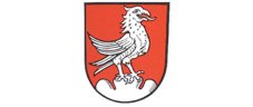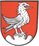 DE: In Rot ein linkshin gewendeter silberner Weih auf silbernem Dreiberg.