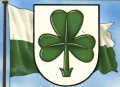 Fahne: 1939: In Weiß zwei grüne Streifen. Im grünen Oberteil das Wappen. Seit 1946 Weiß-Grün