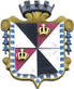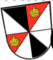 DE: Geviert; 1: schräg geteilt von Schwarz und Silber; 2 und 3: schräglinks geteilt von Rot und Silber, in Rot je eine goldene Königskrone; 4: schräg geteilt von Silber und Schwarz.