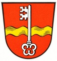 DE: In Rot ein senkrecht gestellter Schlüssel, dem ein goldener Wellenbalken unterlegt ist.