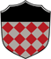 EN: Lozengy of Argent and Gules, a chief Sable.