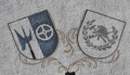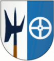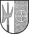DE: Schild gespalten von Silber und Blau. Rechts in Silber eine blaue Hellebarde, naturfarbig geschaftet; links in Blau ein silbernes Vierspeichenrad.