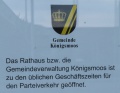 Partnerschaftsschild bei Rathaus: (v.l.) Königsmoos, Großkarolinenfeld; eigenes Foto, 11.06.2020 (Fronleichnam)