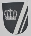 DE: In Schwarz über einem gesenkten goldenen Schräglinksbalken und einer gesenkten goldenen Schräglinksleiste eine goldene Bügelkrone, die bayerische Königskrone.