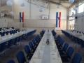 Tour am 26.09.2021 (Bundestagswahl): Grundschule/Zanklstadl beflaggt mit zwei Bannern: Deutschland und Gemeinde