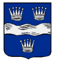DE: In Blau ein silberner Wellenbalken, darüber zwei silberne Kronen, darunter eine solche.