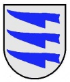 DE: In Silber drei blaue Pflugscharen.