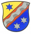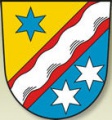 DE: Von Gold, Rot und Blau schräglinks geteilt; in Rot ein silberner Schrägwellenbalken, in Gold ein sechsstrahliger blauer Stern, in Blau zwei sechsstrahlige silberne Sterne.