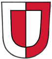 DE: Gespalten von Gold und Rot, darin ein von Rot und Silber gespaltener Herzschild.