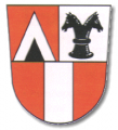 DE: Geteilt; oben gespalten, vorne durch einen silbernen Sparren geteilt von Rot und Schwarz, hinten in Silber ein schwarzer Doppelspringer; unten in Rot ein silberner Pfahl.