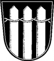 DE: In Schwarz drei hauptgespitzte silberne Pfähle, die durch silbernes Geflecht miteinander verbunden sind.