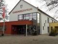 Rathaus/Gemeindezentrum beflaggt mit zwei Bannern (Gemeinde, Bayern)