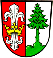 DE: Gespalten von Rot und Silber; vorne eine silberne Lilie mit goldener Krone, hinten auf grünem Dreiberg ein grüner Nadelbaum.