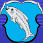 DE: In Blau ein schrägliegender silberner Fisch.