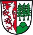 DE: Gespalten; vorne von Rot und Silber schräg geteilt, darauf ein Panter in verwechselten Farben; hinten in Silber über grünem Dreiberg drei grüne Tannen.
