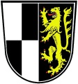 DE: Gespalten; vorne geviert von Silber und Schwarz, hinten in Schwarz ein rot bewehrter goldener Löwe.