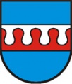 DE: In Blau von Weiß und Rot im Wellenschnitt geteilter Balken.