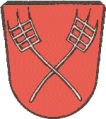 DE: In Rot zwei gekreuzte silberne Heugabeln.